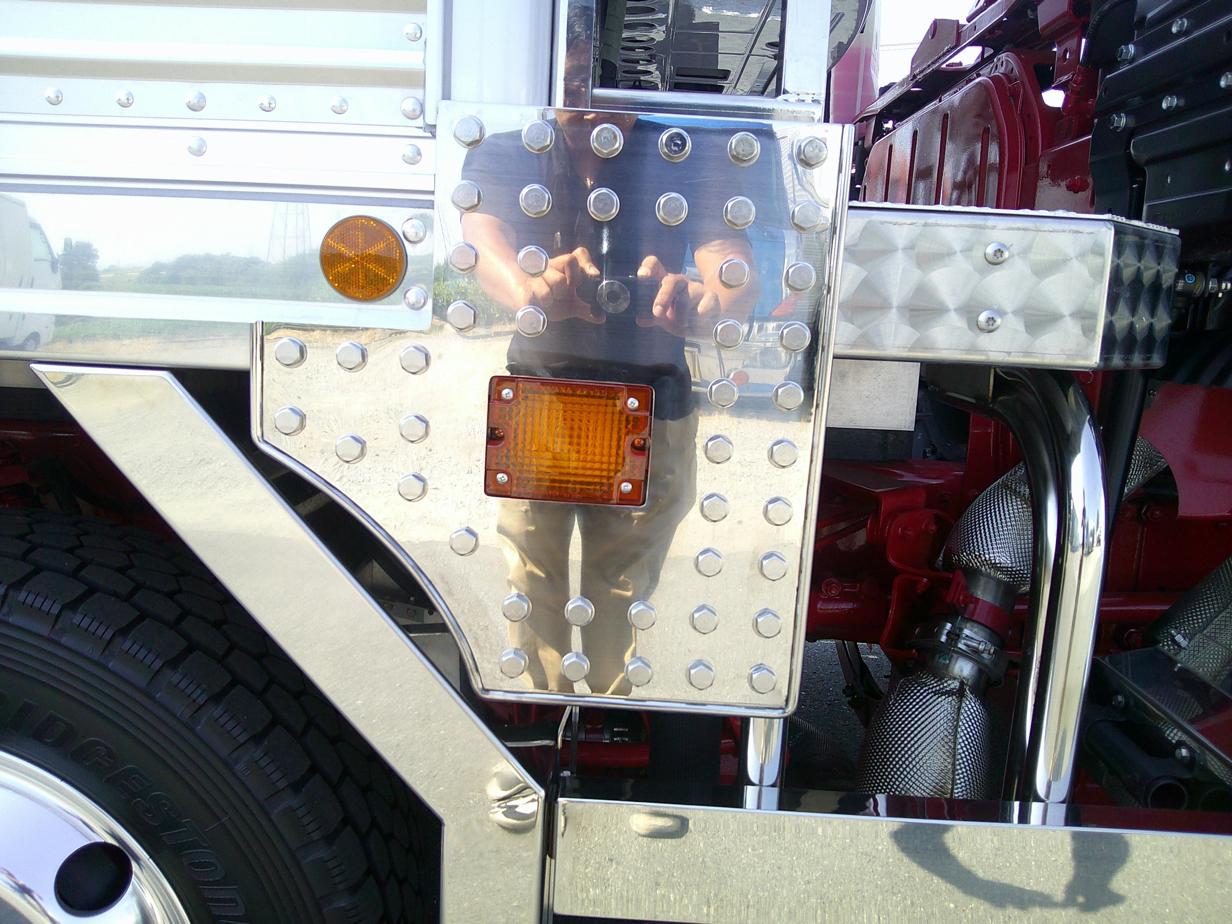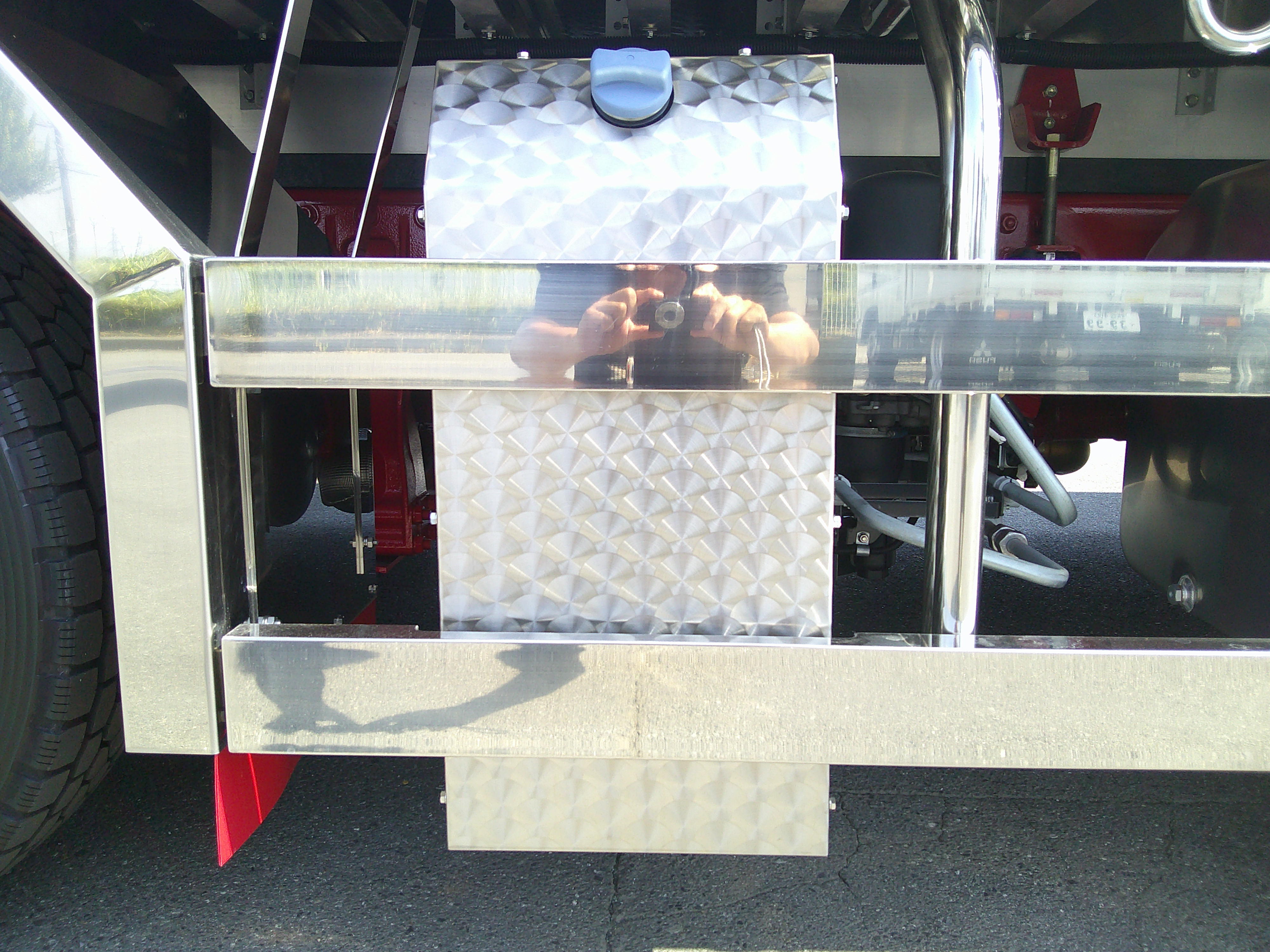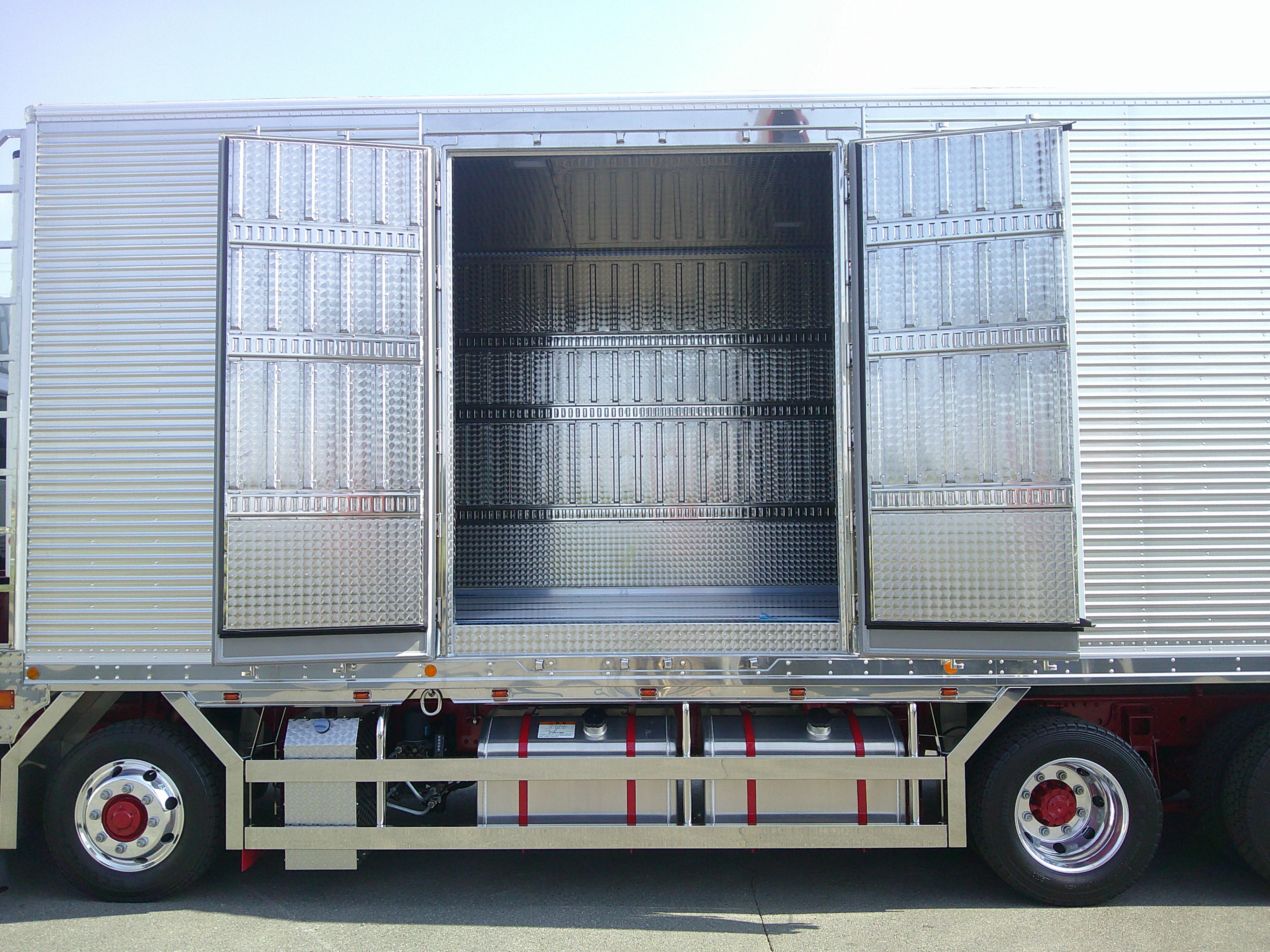 エアリブ(ウロコ)、前後水抜き穴2つずつ、荷室前立て天井、両サイドウロコ、フェリーフック2対、サイドマーカー多数、サイドバンパー角パイ(ステンレス)ADBLUEカバーウロコ、観音扉(ウロコ)